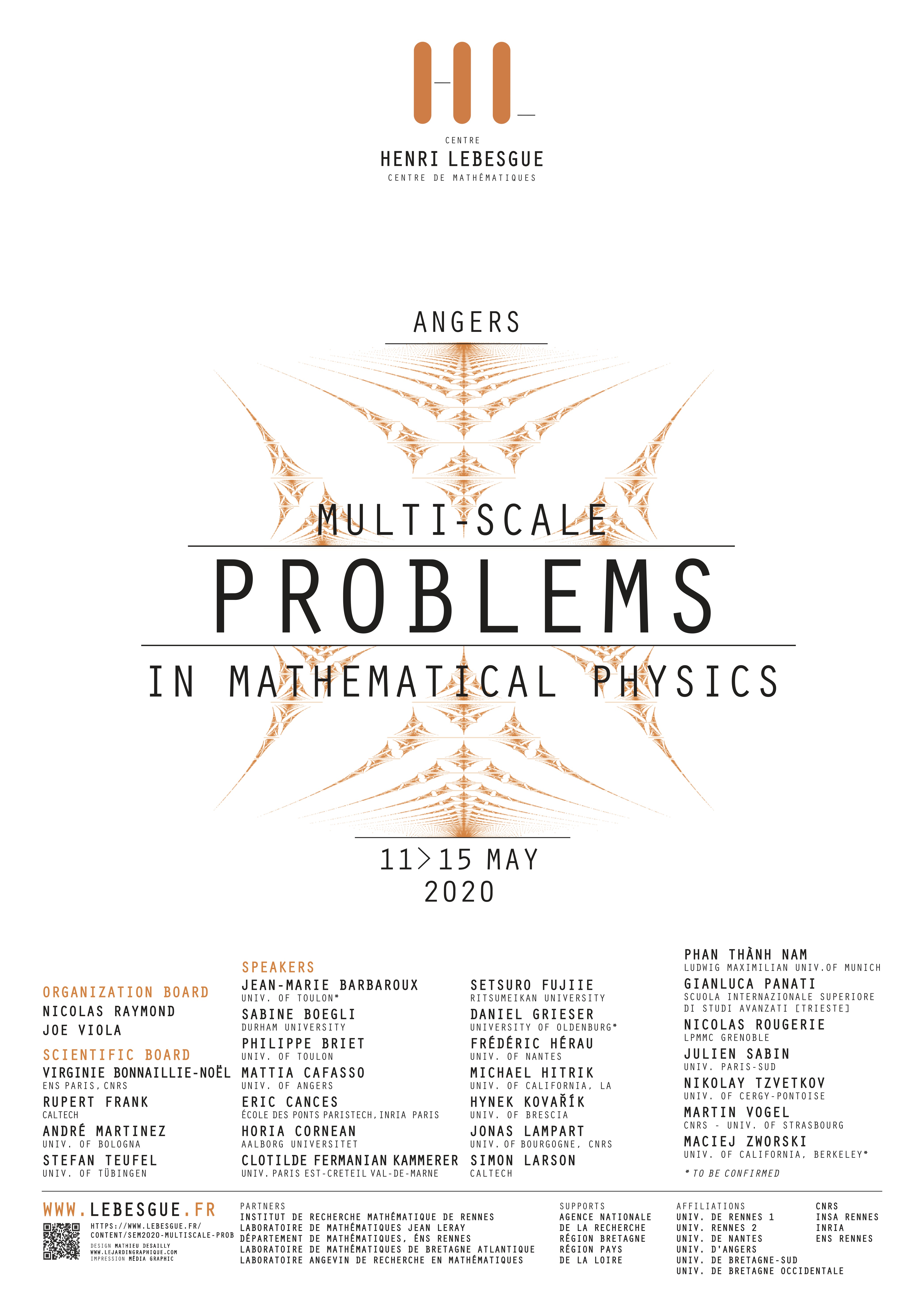 The aim of this workshop is to present the latest advances involving multiscale phenomena arising in Physics. This will allow for the interaction between different research communities and stimulate new investigations on a large array of recent problems, from dynamical problems to spectral theory.